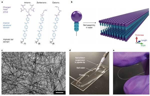 • 將芳族兩親物自組裝成超穩定的納米帶和對齊的納米帶線